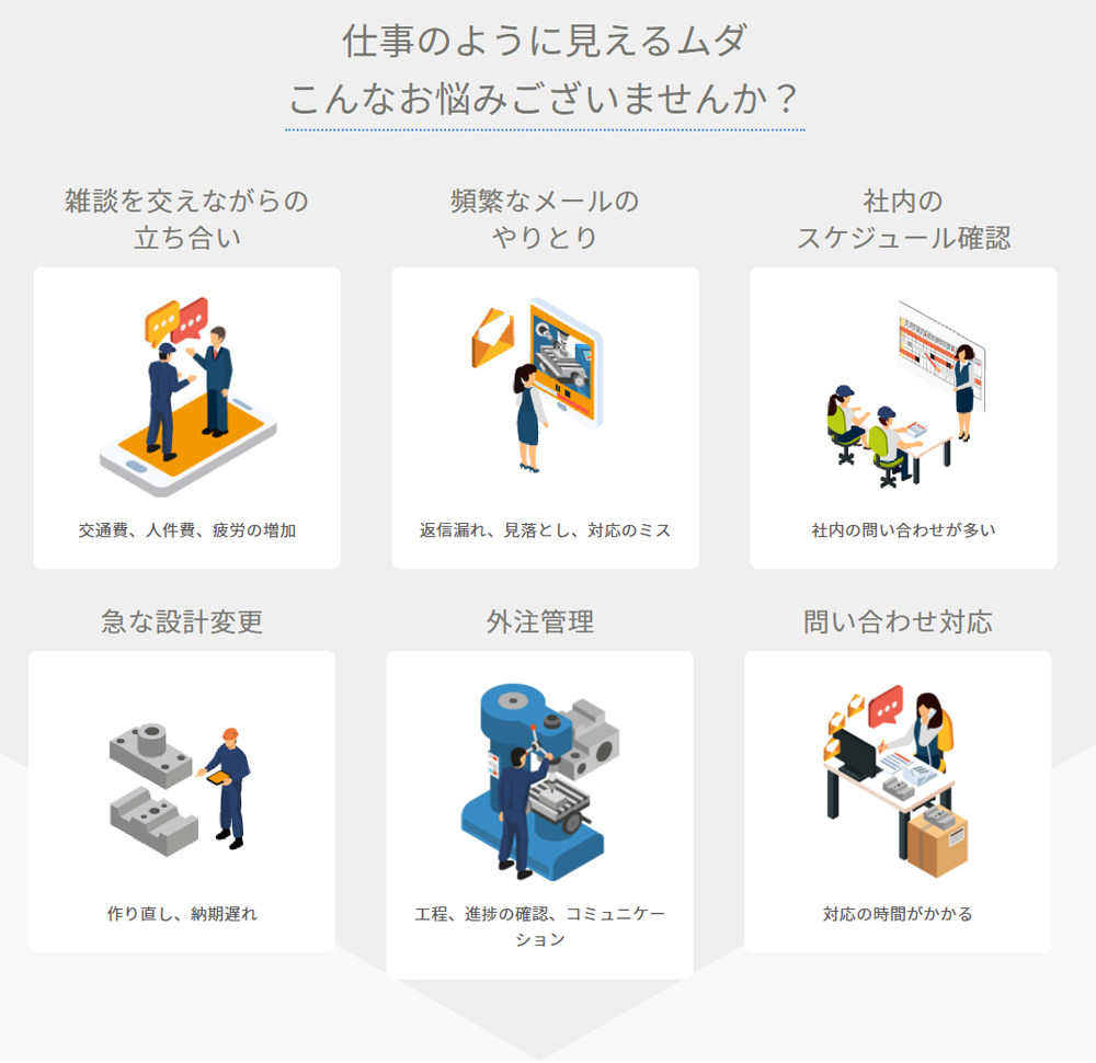 山田製作所では、このちょくレポを導入し、お客さまの専用ページをWEB上に設け、コメント付きの写真や動画で工程進捗のご連絡を行っています。