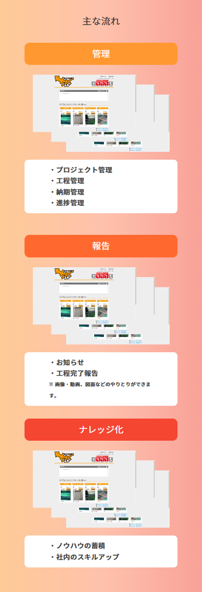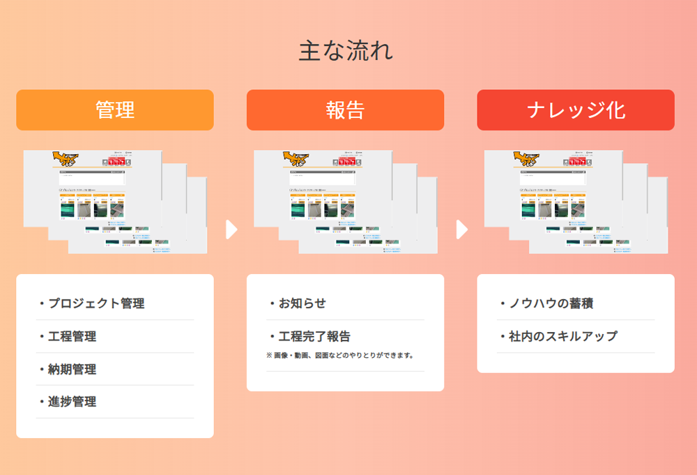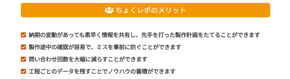 「ちょくレポ」は製品ができるまでの進捗をわかりやすくお知らせするシステムです。